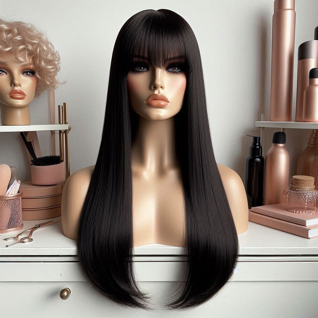Introducing our Fringe Straight wig made with high-quality Brazilian hair of 12A quality! This wig is designed to give you a chic and trendy look with its straight and sleek style. The fringe adds a touch of sophistication to your look, making it perfect for any occasion. The pre-styled customized front and pre-bleached lace ensure an impeccable hairstyle in no time. With its soft, silky and durable hair, this wig offers a natural look with good ventilation for optimal comfort. Don't wait any longer and get your hands on our high-quality Fringe Straight wig for a flawless and stylish look!
